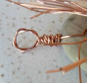 Luego envolver la cola de alambre restantes alrededor de la parte recta del alambre en la izquierda de espacio por encima de la rosquilla. Hacer al menos 3 vueltas completos. Puede envolver tanto como desea después de eso si el cable es suficientemente largo. Corte el exceso de cable si quieres. (Aunque generalmente dejo el exceso hasta que sepa lo que está sucediendo con mi diseño.)