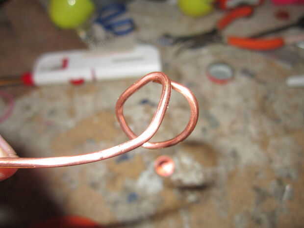Tomar el alambre y doblar en un círculo con la mano o alrededor de su mango o vástago. Luego realizar un doblez en la parte superior para mantener el mármol en como las fotos.