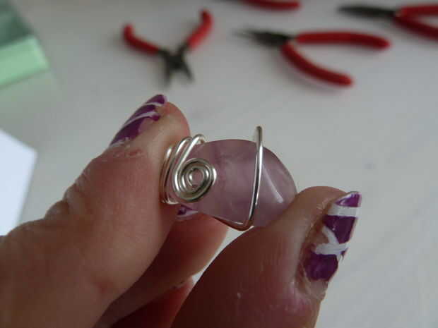 yo he estado haciendo colgantes de alambre envuelto hace unos dos años, después me enteré de mis amigos. Originalmente comenzamos con rocas del río y el llano ferretería alambre, pero progresé a cristales de mar y piedras caídas de vez en cuando y ut