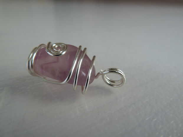yo he estado haciendo colgantes de alambre envuelto hace unos dos años, después me enteré de mis amigos. Originalmente comenzamos con rocas del río y el llano ferretería alambre, pero progresé a cristales de mar y piedras caídas de vez en cuando y ut