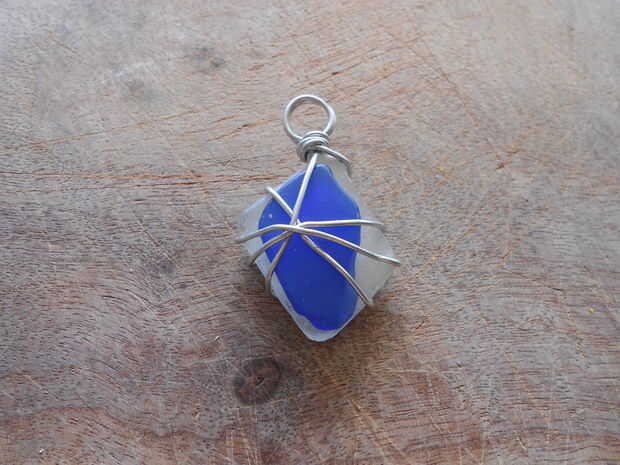 este colgante está hecho con un pedazo de vidrio fundido en forma de lágrima, pero también se podrían utilizar una piedra u otros elementos de diferentes tamaños y formas.La siguiente técnica se adapta fácilmente para satisfacer sus necesidades.Ningú