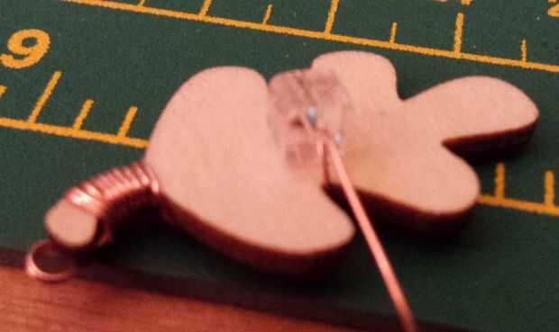 • Pasar el alambre a través de la espalda y luego al frente y pasar el alambre a través de la cuenta otra vez (esto hará que el grano más seguro)