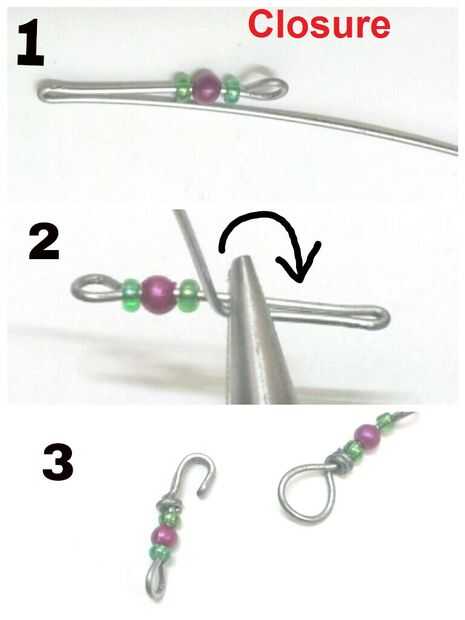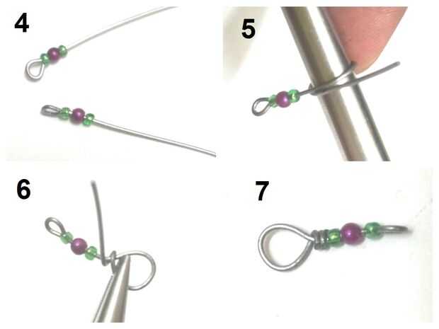 Tomar dos cables idénticos. Hacer un lazo en un extremo en ambos. Fines decorativos puede rellenar con bolas. En este ejemplo he utilizado 3 granos que coincide con la pulsera se está presentando en un paso posterior.