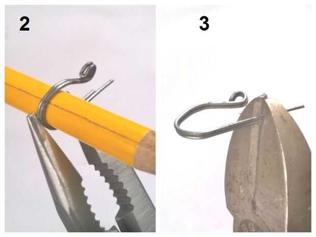 Oído Wire. -Tomar 3" de cable de 20 awg y doblar por la mitad. Ahora sujete firmemente el extremo doblado con sus pinzas y hacer un lazo. Para la curva, usar un lápiz. Mantenga el cable alrededor del lápiz y doblar suavemente. Corte el exceso. Hacer otra curva en el en la otra esquina (no el extremo del pliegue). Ahora lo único que tienes que hacer es al ras corte el extremo doblado y tiene dos hilos idénticos oído.