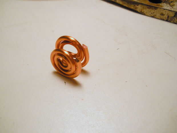 Traer el cable para crear otra espiral; Siga la dirección del primero para mantenerlo aseado buscando. Recorte cualquier bit extra de la final. Si esta pieza es para joyería, puede limar los filos del corte.
