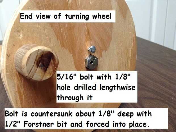 Puede haber otras maneras de hacer un falso mandril para sujetar los cables en la rueda de giro, pero no puedo pensar en alguna forma elegante de hacerlo. De esta forma funciona muy bien para mí.
