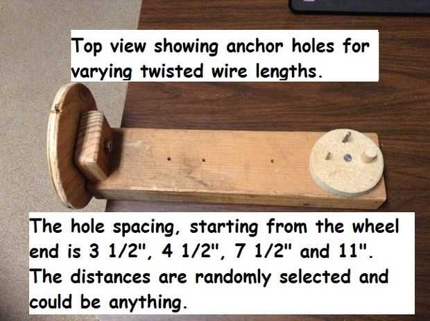 Observe que hay varios agujeros en la base 2 x 4. Estas se colocan para que diferentes longitudes de cable se pueden torcer. Previene algunos residuos permitiendo a los usuarios hacer las partes de la longitud necesaria para el propósito a mano.