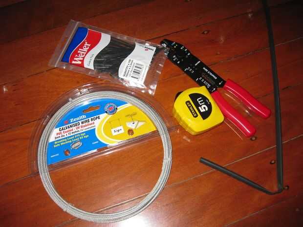 * Algún tipo de alambre de acero, he usado PVC revestido galvanizado cuerda de alambre.