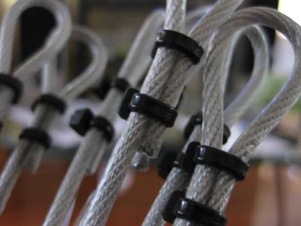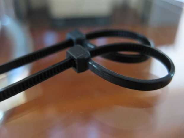 Tome los lazos zip y convertirlos en bucles, esto hará que sea más fácil al poner en el cable.