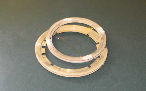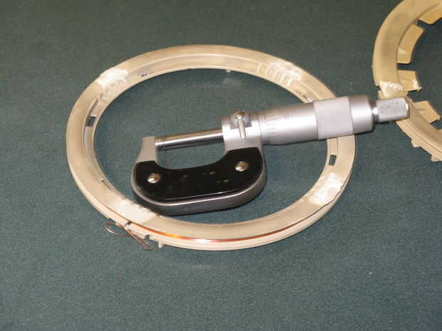Siguiente desde el centro del paquete de bobina mida el diámetro de la bobina y haz 5.5 pulgadas y multiplicar por Pi darme 17,3 pulgadas de circunferencia.