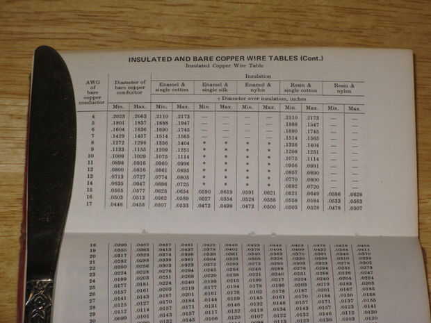 Para ello, necesita tres cosas, una 1 pulgada fuera de micrómetro, una cinta métrica y un aislado y tabla de cables de cobre desnudo. Para mis tablas utilizo mi libro, "Electrónica chaleco referencia libro de bolsillo, por Harry Tomas."