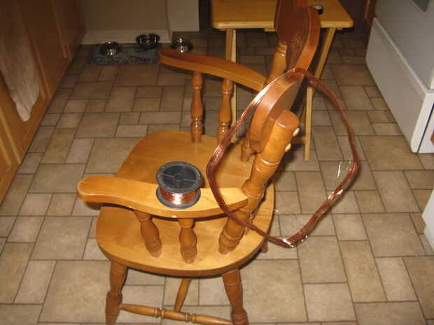 Guardar los carretes de sedal, cintas, cables y otras fuentes para trabajos como este; Comenzar seleccionando una bobina suficientemente grande como para sostener todo el cable que estoy enrollado. Recuerde el más grande es la bobina que estoy consiguiendo el más grande la bobina que necesito. Cubra la bobina de alambre sobre el respaldo de una silla y a partir del extremo exterior del cable y tomando mi tiempo empiezo a enrollar el cable alrededor de la bobina hasta que el alambre en el carrete. Cuando eso se hace me marca la bobina con el calibre y la longitud.