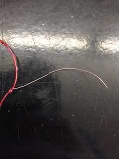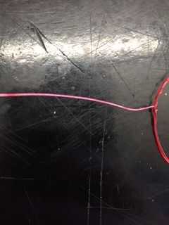 En este paso, usted necesitará el papel de lija y mantener tus alicates / exacto cuchillo cerca por. En un lado del círculo, tome el cable enderezado y utilizar la lija para afeitar apagado el esmalte rojo en ambos lados del cable. Repetir este proceso en el otro lado pero sólo afeitarse desde el fondo la mitad. No afeite el esmalte de la parte superior de la segunda parte.