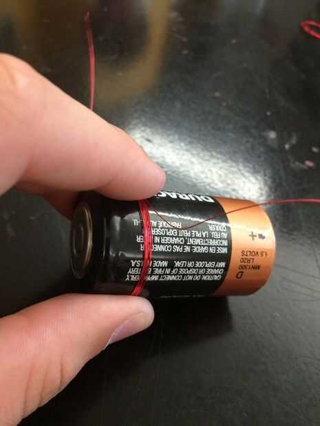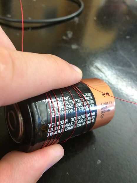 Reunir materiales:Papel de lijaBatería DBanda de goma2 clipsLongitud del brazo un cable rojo (calibre 26)ImanesPaso 1: Enrolle el cable en un círculo, dejando aproximadamente una pulgada de izquierda de alambre a cada lado.El círculo debe ser como si