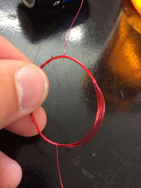 Reunir materiales:Papel de lijaBatería DBanda de goma2 clipsLongitud del brazo un cable rojo (calibre 26)ImanesPaso 1: Enrolle el cable en un círculo, dejando aproximadamente una pulgada de izquierda de alambre a cada lado.El círculo debe ser como si