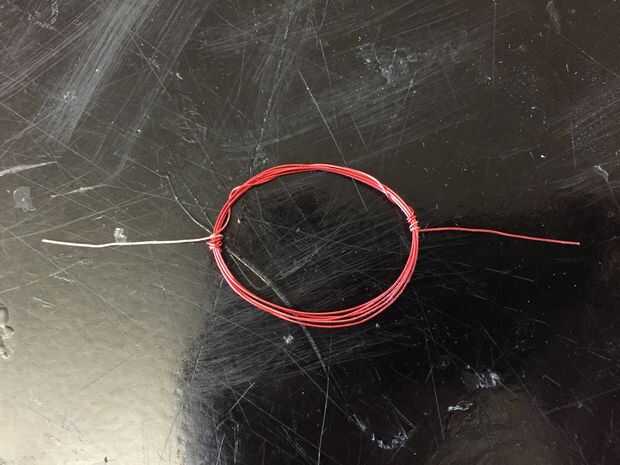 -Una vez que el alambre está enrollado alrededor de la batería, cuidadosamente levante el alambre y la batería y asegúrese de que no se desintegraría. Para obtener el alambre a permanecer juntos, envolver cuidadosamente los extremos del alambre que dejaste en la parte superior a través del centro del agujero y alrededor de cuatro o cinco veces en ambos lados para crear un sello bonito y algo como esto:
