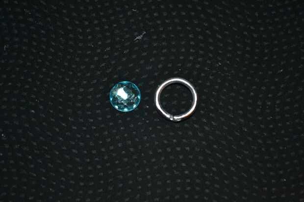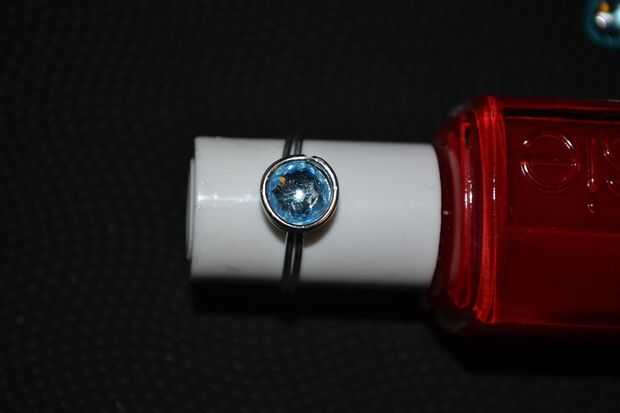 Si desea hacer el rhinestone mira como es en un entorno y no sólo pegado, hacer un pequeño círculo con el alambre que es el tamaño exacto de la piedra preciosa. Puede hacerlo envolviendo una pequeña longitud de alambre alrededor de algo pequeño y circular, y ajustar así el tamaño es justo, entonces cortar cualquier exceso de alambre. Luego pegar el pequeño "ajuste" alrededor de la joya.