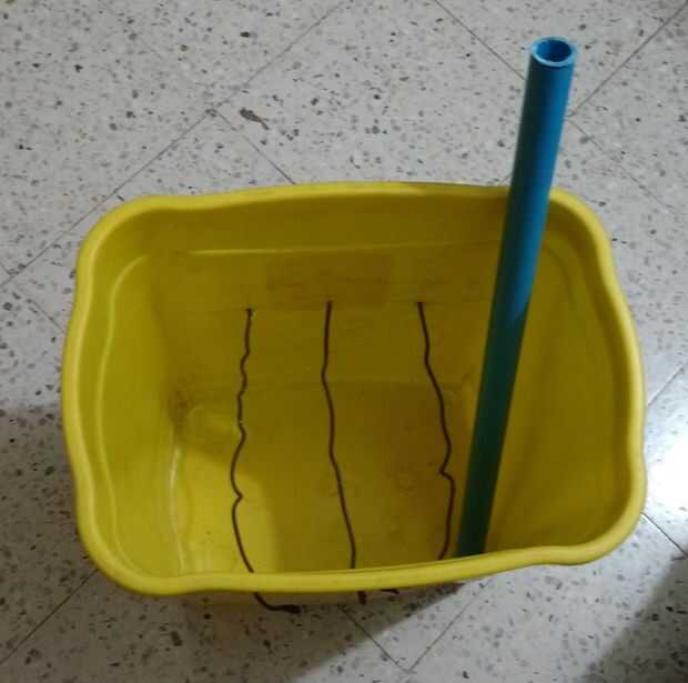 Coloqué el tubo para el agua (como se ve en la imagen) y luego tomaron algunas medidas para que exactamente podría cortar la capa de fibra de vidrio.