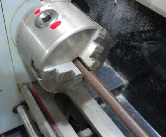 Este método exige el contrapunto a quitarse y una luneta montado encima. Se instala un centro de 60 grados, y también está alineado con el centro de la tirada de manera convencional. Ausente un resto constante, el ángulo del retazo puede usarse para la misma utilidad, simplemente el diámetro del agujero es necesario utilizar la tirada del torno y un tamaño apropiado para el centro muerto. El centro muerto puede sí mismo ser dado vuelta de cualquier entrega de chatarra o barra práctico y el estándar de 60 grados. Un agujero centrado en el trabajo final en el constante y apriete todos juntos.