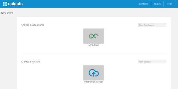 6) Seleccione el origen de datos y Variable. En nuestro caso es mi Edison y Sensor PIR.