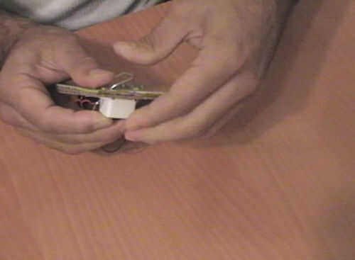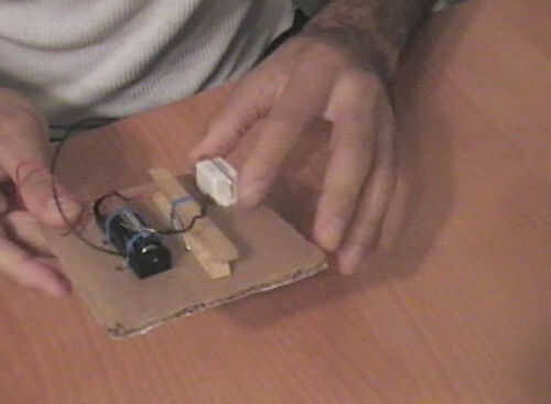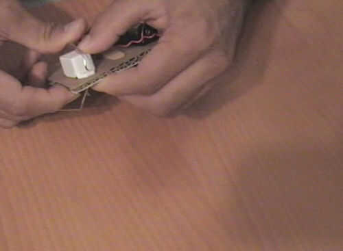 Coloque su mini zumbador en la cartulina. Use una tachuela para meter 2 agujeros para el zumbador (image1). Despliegue su clip jumbo. Presione ambos extremos de la pinza de papel a través de los orificios del zumbador (image2). Ahora doblar el clip contra el cartón para garantizar la buzzer(image3) mini.