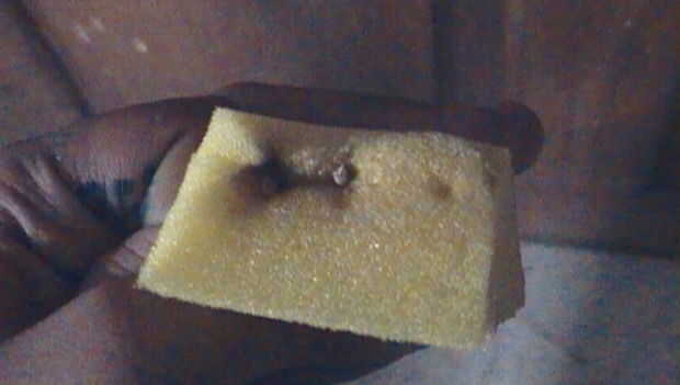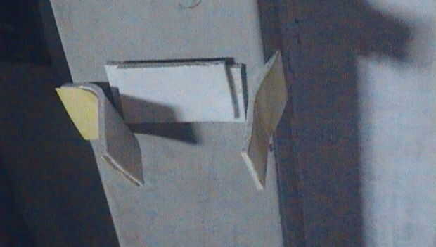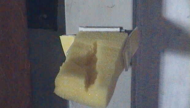 la tira del metal y la pieza de espuma deben ser paralelas entre sí. ahora mantener el láser en la ranura en la pieza de espuma y tal que el rayo cae sobre el transistor de la foto Cuando se interrumpe el rayo sale un sonido