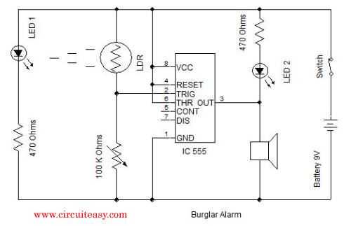 La fuente de luz y LDR así se ajusta con un reflector que luz directamente caerá en la LDR, pero ladrón entra dentro entonces bloquea el haz de luz y LDR en oscuridad.