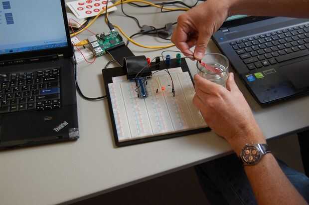 El resultado final fue que el led indica que el sensor estaba sumergido.
