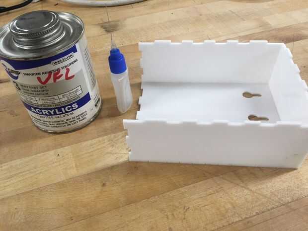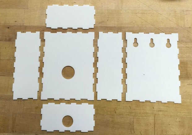 Cortan laser y caja de diseño! Hay un montón de grande sitios web que generen planes de caja gratis. Había utilizado http://www.makercase.com y luego un agujero para el tornillo en el botón y un orificio del cable. Yo he conectado el archivo que utilicé, pero podría utilizar algunos retoques.