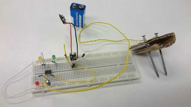 El inconveniente de esta solución es que la corriente siempre fluirá a través del sensor de humedad, que la batería y causar electrólisis en las uñas. Sin embargo, para este prototipo, no molesta sobre eso.