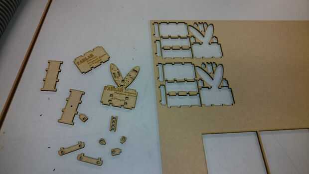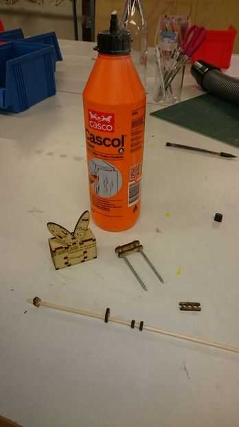 Las patas de los insectos fueron grabadas para el tablero del MDF, se cortar la carcasa y la carcasa pegados juntos.
