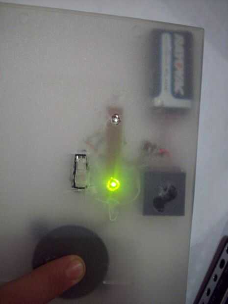 pongo esto juntos después de un intento de adaptación posible. Tengo una alarma magnética en mi puerta pero se apaga cuando la puerta se cierra otra vez y tener la puerta en el lado opuesto de mi casa puede no ser lo suficientemente sustancial como p