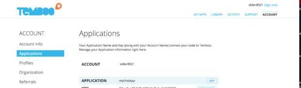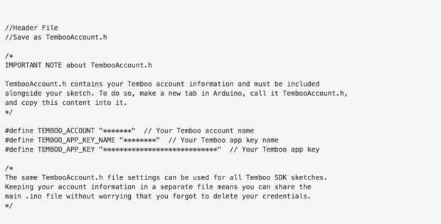 Ahora ve al archivo de encabezado y añadir tu información de cuenta Temboo. Entra en tu cuenta Temboo y aplicaciones de éxitos para obtener toda esta información.