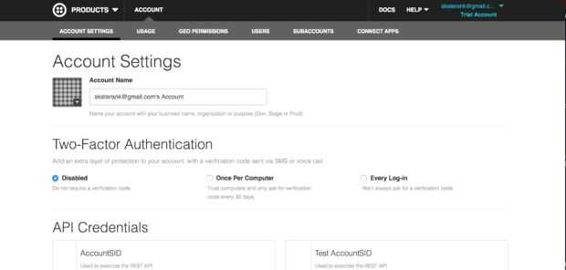 Vaya a configuración de la cuenta en su cuenta de Twilio el SID de cuenta y Auth Token (haga clic en el botón de bloqueo para mostrarlo)