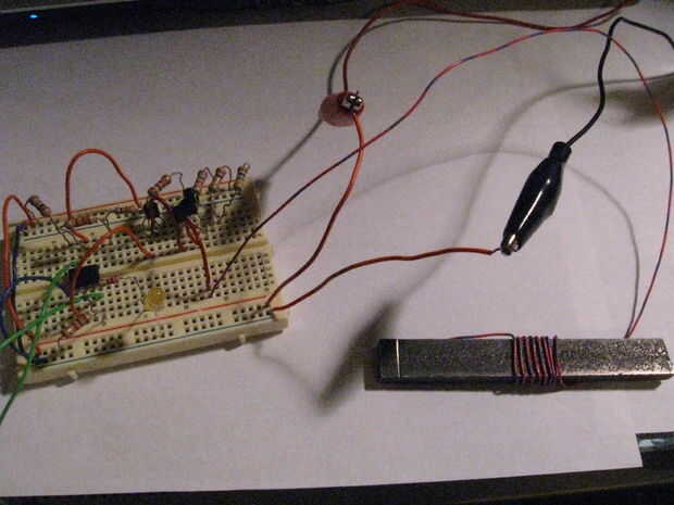 me imagino que si has visto una película de James Bond, explorar las categorías de tecnología aquí en Instructables, o visto un episodio de MacGyver ha visto lasers se utilizan como factores de disuasión de robo. Por supuesto si has visto alguna televisión has visto gente (como MacGyver) conseguir pasado láseres con polvo, humo y óptica cables y apenas parpadear un ojo en el proceso. ¿Lo que si había algo que funcionaba igual de bien y no puede ser frustrado por medios visibles? ¿Detectores de metal vienen a la mente? Si no, debe porque se trata de cómo estamos construyendo nuestra nueva alarma antirrobo. (Piezas: Temporizador 555 y tal vez un microcontrolador 4 transistores NPN de x, varias resistencias, cables, un zumbador piezoeléctrico o led, una especie de metal slug (como un tornillo o con imán))