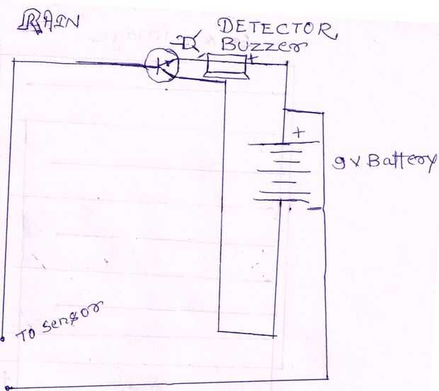 Hola! Se trata de shobana aquí... am gona le explica un proyecto muy simple e interesante... EL CIRCUITO DE ALARMA DE LLUVIA. ¡ Sí! Esto es muy útil ya que nos indica cuando el agua de lluvia consigue en contacto con las 2 puntas de prueba que está c