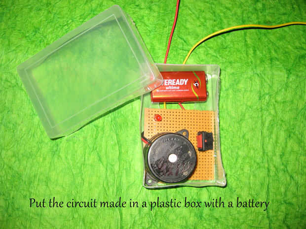 Mirando la imagen del circuito de conectar el circuito y poner el upin conjunto una caja de plástico como una caja de tarjetas de visita.