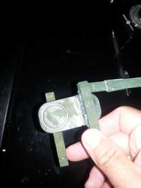 Después de que el pegamento secó pinté la alarma. Para la línea he usado sedal regular. La alarma en el suelo con las patas de la ropa y atar la línea al imán. Ocultarlo y atar la línea del imán a otra cosa como un árbol y cada vez que se tira la línea tira el imán y la alarma se apaga.