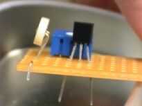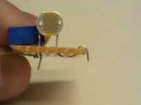 A continuación, montar el transistor (en la foto 3 el extremo plano se enfrenta al transistor) y doblar el medio perno (perno central del transistor se conoce como la 'base'). Ahora Asegúrese de que soldar el pin central del transistor a los dos pernos de ajuste que están conectados uno al otro (3 º / 4 º cuadro arriba). Ahora doblar el eje derecho del transistor (las patillas se basan en una visión frontal, es decir, mirando la parte plana de la carcasa que tiene su información impresa) para reunirse con el pin restante de la célula de los CDes y soldarlos juntos como se ve en la imagen 4.