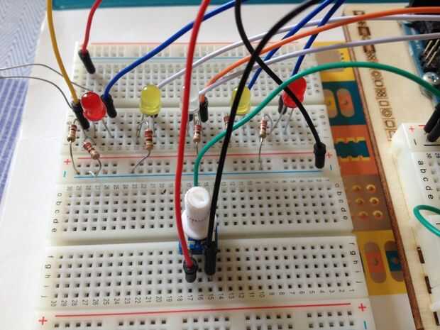 Tenga en cuenta que no hay suficiente GPIO pins en el Arduino, así que no lo Conecte a uno de los pines RGB a Arduino. O, si no tienes un LED RGB, a sustituir con más LEDs. Tenga en cuenta que necesitarás una resistencia extra. No te preocupes, no importa mucho al final.