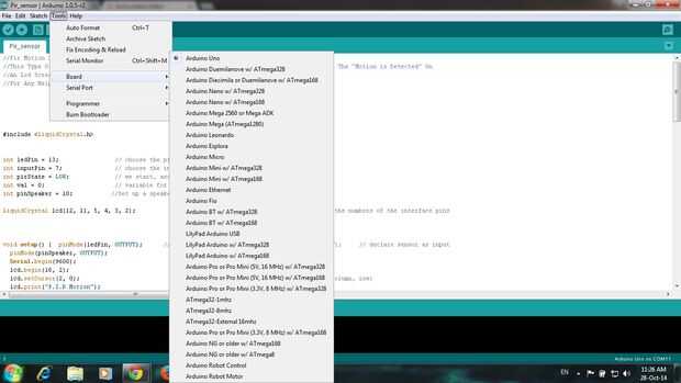 5 Haga clic en Pir_Sensor.ino que se da a continuación en el archivo adjunto.