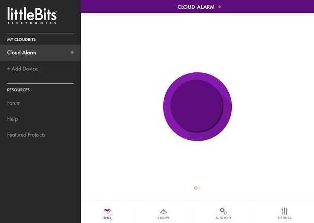 Una vez que el cloudBit está configurado, puede probar a través de la página de configuración. Presione el botón y mueva el control deslizante y ver la salida (en este caso, el Motor de la C.C.) responder.