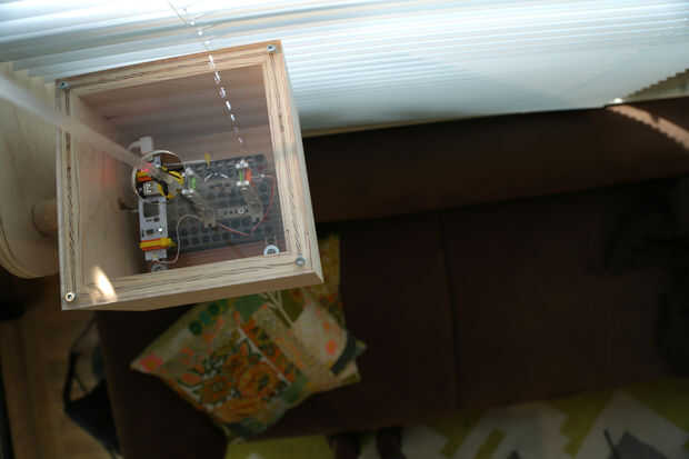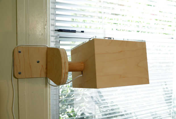 Para mantener la alarma del sol en el lugar en el lado de la ventana, yo montada encima de una caja de madera con una tapa de acrílico que se podría atornillar la ventana Recorte.