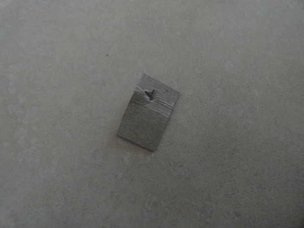 Cortar un pequeño trozo de cartulina con un pequeño agujero cerca de uno de los extremos. Hilo de atar a la cartulina, no cortar el hilo de rosca