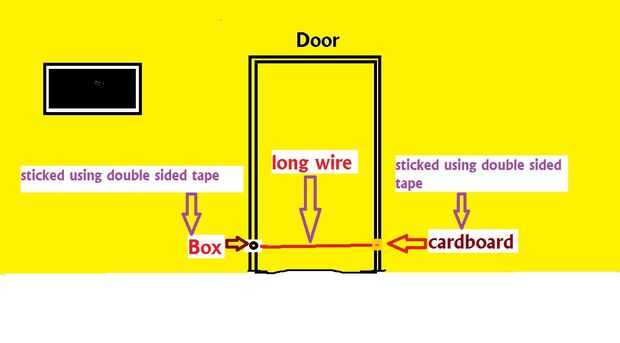 Es una simple ratón trampa viaje alarma. Nunca hay que dormir con un ojo abierto otra vez. Sólo esto en puertas y cualquier intruso se dispara lo que le da tiempo suficiente para matarlos antes de que te maten.Se necesitaCintatrampa del ratón Victor