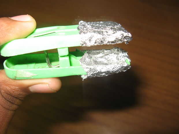 enrollar los extremos de los clips de plástico con papel de aluminio.