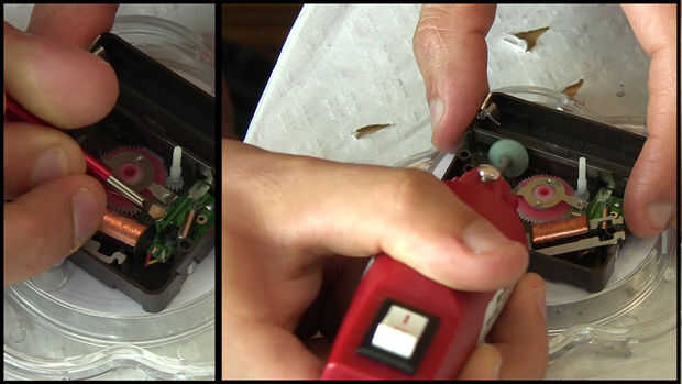 A continuación, desconecte el anillo del metal de la batería. Utilicé un cortador pequeño.