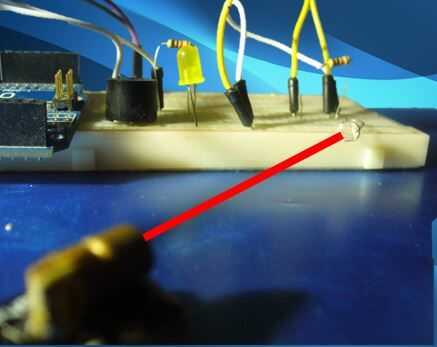 Coloque el láser algunos y apuntar a la fotorresistencia.