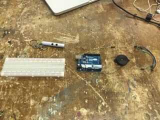 lo que necesita para la construcción de este proyecto es de cuatro cables, tablero de pan, arduino, alarma, ordenador portátil. Lo primero que hacer es conectar todos los cables a la placa arduino y el pan y la alarma y luego ir al software de arduin