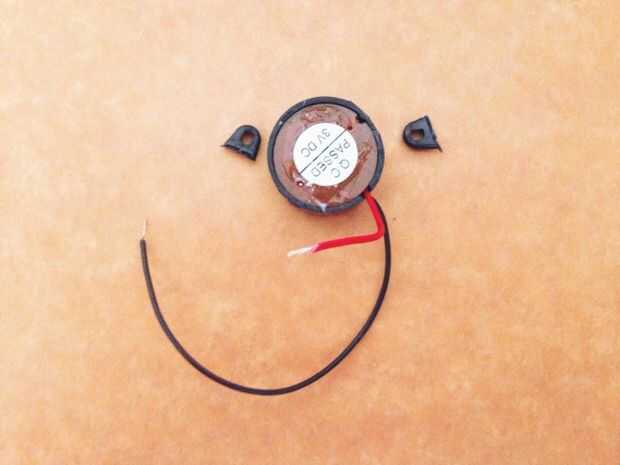 Puesto que mi timbre tiene estas cosa de oído y evitar que se pegue correctamente, usé una recortadora para eliminarlos. Pega el timbre en el interior de la lata de la menta y utilice una pinza para tirar el cable rojo a través de la abertura.